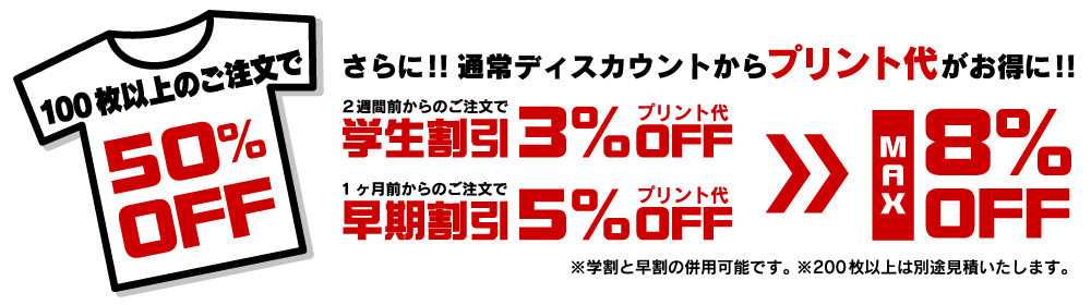ITEM アイテム ウェア グッズ 印刷物 WEAR 数量割引率 ウェアのブランド、種類、色、サイズに関係なくご注文枚数の合計で表示価格より割引した価格で購入できます。 無地での購入もできます。 (対象外もありますので詳しくはスタッフにお尋ねください) 下のバナーのウェブカタログよりお選び下さい。 プリントスター参考定番商品 00085-CVT 5.6オンスヘビーウェイトTシャツ 00300-ACT 4.4オンスドライTシャツ ユナイテッドアスレ参考定番商品 5001-01 5.6オンスハイクオリティーTシャツ 5900-01 4.1オンスドライアスレチックTシャツ スロス参考定番商品 DF1101 6.6オンスプレミアムコンフォートTシャツ ST1102 リサイクルポリエステルTシャツ(ケミカルリサイクル)